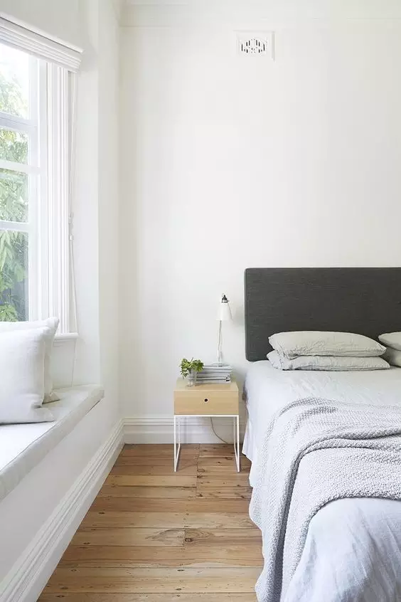 懸壁式的床頭柜,不僅視覺上干凈清新,還能增強空間感