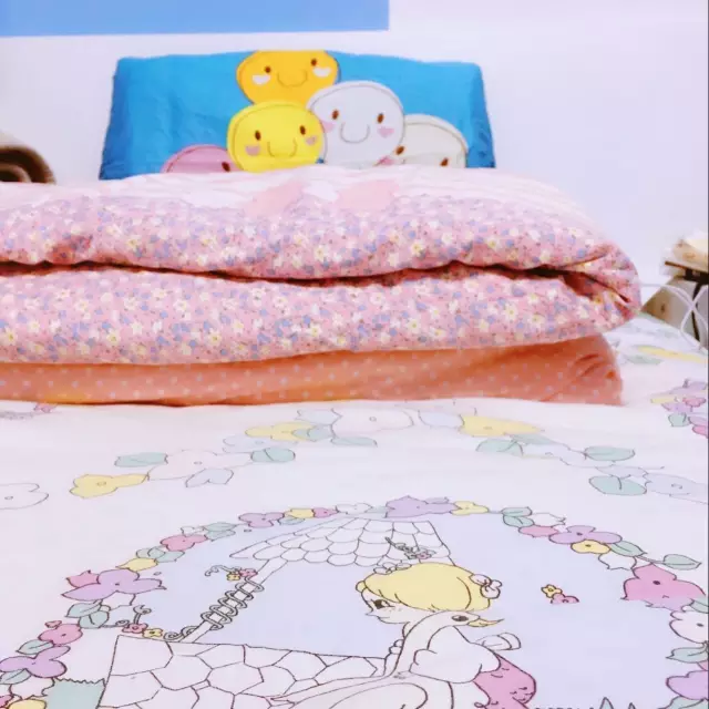 當我拆開包裹,看到粉紅色小碎花的被子,