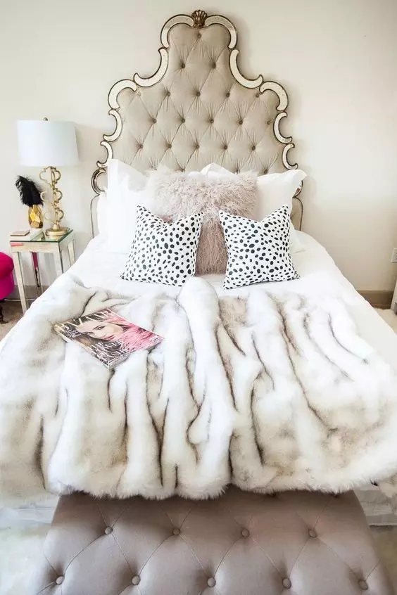 蓬松的枕頭被掩在被間,輕垂的蕾絲細細摩挲著地毯